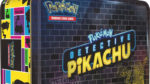 • Il bauletto da collezione Detective Pikachu contiene sette buste dell’espansione Detective Pikachu, due buste di espansione aggiuntive del GCC Pokémon, una spilla collezionabile ispirata al detective Pikachu e un bloc-notes con foglio di adesivi Pokémon; il tutto racchiuso in una robusta scatola di metallo.