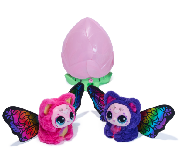 IBloomables offrono un’esperienza di gioco magica e interattiva, con una doppia trasformazione sorprendente e ripetibile. Ogni fiore contiene un bruco chiamato Hatchipillar che, con le giuste attenzioni, sboccia grazie a luci arcobaleno. Dopo aver giocato e nutrito Hatchipillar con l’accessorio a forma di foglia incluso, le sue antenne si illuminano: è il segnale che è pronta a trasformarsi. Riposizionando Hatchipillar nel fiore, i petali si richiudono e si riaprono mostrando la trasformazione in Kittyfly, una farfalla con ali colorate, occhi espressivi e morbidi dettagli in tessuto. Il gioco è arricchito da oltre 100 suoni, effetti luminosi e tante modalità interattive: si può fare il solletico ai personaggi, cantare con loro, porre domande e scoprire le risposte. Ogni fiore include uno dei due personaggi Kittyfly disponibili, Violet o Rosie, e la fioritura può essere ripetuta tutte le volte che si desidera.