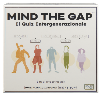 Dopo aver conquistato il pubblico internazionale, Spin Master lancia Mind The Gap – Il quiz intergenerazionale sul mercato italiano. Una sfida senza età creata per riunire generazioni diverse attorno allo stesso tavolo con domande di cultura generale per scoprire chi conosce meglio le varie fasi della storia contemporanea. Un viaggio attraverso la musica, il cinema, lo slang e le abitudini quotidiane che hanno definito intere epoche, capace di trasformare le differenze generazionali in momenti di risate, dialogo e scoperta condivisa. Tante domande e divertenti sfide suddivise in cinque generazioni – Boomer, Gen X, Millenial, Gen Z, Gen Alpha – da utilizzare a piacimento per comporre un tabellone: i giocatori, divisi in squadre, dovranno fare un giro completo della plancia, rispondendo correttamente alle domande e completando le sfide delle diverse generazioni, ballando, cantando e mimando. La prima squadra che completa un giro tornando al punto di partenza, vince.