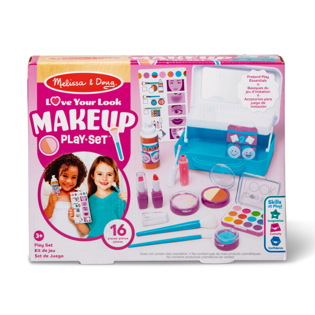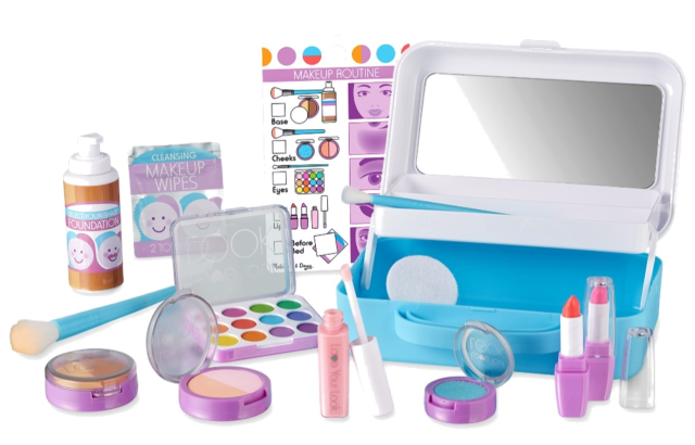 Con questo set da 16 pezzi i bambini potranno fare pratica con dei finti trucchi e creare look meravigliosi! C’è tutto quello che può servire: una base con specchio incorporato, una finta base per il viso, fondotinta, fard, ombretti, pennelli, rossetti e addirittura le finte salviettine struccanti. Ogni mini-confezione di trucco è apribile e al suo interno si può sentire una consistenza diversa dalle altre, proprio come nella realtà, ma senza lasciare polverine o altro in giro! L’imitazione è molto importante per i bambini e con questo kit per il make-up potranno cimentarsi in una perfetta copia degli adulti!