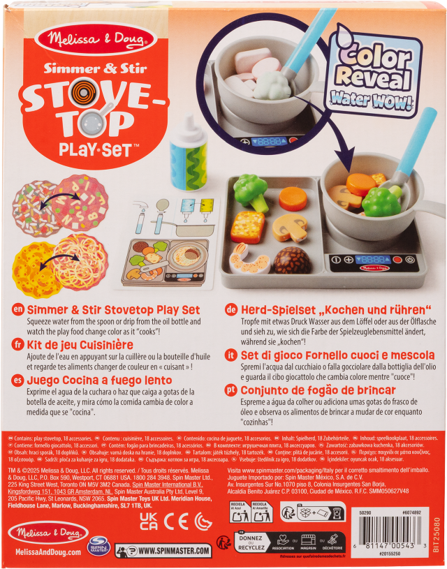 Aggiungi l’acqua, mescola gli ingredienti e guarda come il cibo si “cuoce” davanti ai tuoi occhi grazie al cucchiaio che rilascia acqua! Cucina deliziosi piatti di pasta o riso aggiungendo i vari condimenti: proteine, verdure, sale e olio. Consulta il menù per scegliere il piatto che più ti aggrada, accendi i finti fornelli e via! Grazie a questo playset i bambini potranno approcciarsi al mondo della cucina in modo semplice e divertente, sperimentando senza pericoli la cottura dei cibi e maneggiando gli utensili di tutti i giorni che vedono utilizzare dai loro genitori.