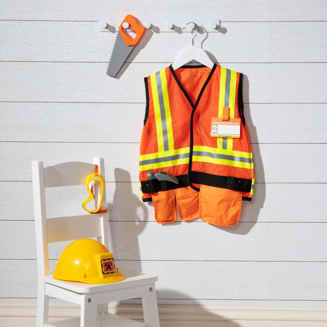 Pronti per andare a lavorare in un cantiere con questo costume super completo! Tutte le tasche che possono servire, una seghetta, un martello giocattolo, una mascherina e l’elmetto per rimanere al sicuro.