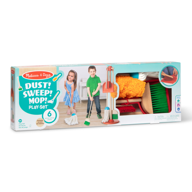 Quante volte i bimbi vogliono pulire e riordinare insieme ai genitori perché li vedono fare quelle attività? Si sa che l’imitazione è importante e questo set per le pulizie è perfetto a tale scopo: un kit da 6 pezzi per pulire ogni superficie con cura, tra cui una paletta, una scopa e un finto mocio, il tutto a grandezza bambino!