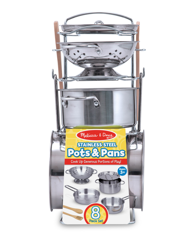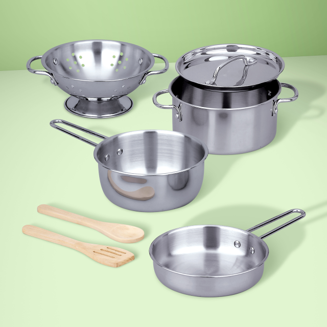 Pentole e padelle sono essenziali in qualunque cucina e perché dovrebbero mancare in quella di un bambino? Un pentolone per preparazioni complesse, una pentola per la pasta, una padella per il sughetto e uno scolapasta: ci sono tutti gli strumenti – 6 padelle e pentole in vero metallo – per un gustoso pranzo! Mescola con il mestolo o con la spatola forata in legno e una volta finite le preparazioni riponi tutto nell’organizzatore.