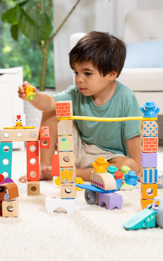 Per un gioco con i Blockables più elaborato scopri questo set da 34 pezzi a tema safari! Unisci i 16 blocchi in legno utilizzando i 15 pezzi di attacco e crea divertenti storie con il personaggio incluso! Decidi se vuoi usare la fantasia e creare animali fantastici oppure se ricreare l’elefante, la zebra, il leone, il coccodrillo e la giraffa. La scatola ha un comodo manico per essere portata in giro e una calamita che permetterà di richiuderla facilmente. Ma il divertimento non finisce qui! Una volta aperta, la confezione ricrea un paesaggio per giocare con i blocchi. Realizzati delle giuste dimensioni per bambini dai 2 anni e con un meccanismo facilissimo da utilizzare.