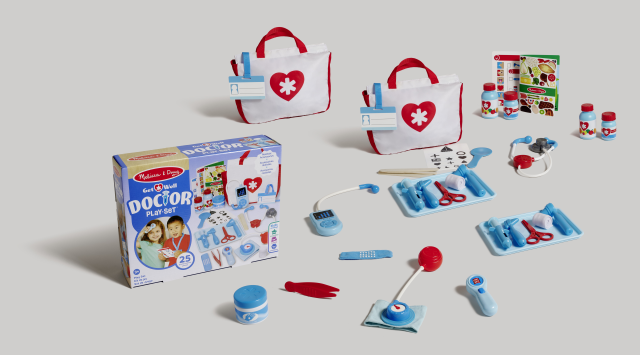 I piccoli dottori hanno nella loro valigetta tutto l’occorrente per una visita medica! Stetoscopio, pinze, misuratore di pressione, termometro e tanto altro, ma si va sempre con ordine: consultiamo la to do list, scopriamo il problema con una visita accurata e prescriviamo medicine e vitamine. Tutti gli strumenti sono facili da maneggiare e aiutano i bambini a esplorare il modo dei dottori con 25 semplici ma divertenti accessori.
