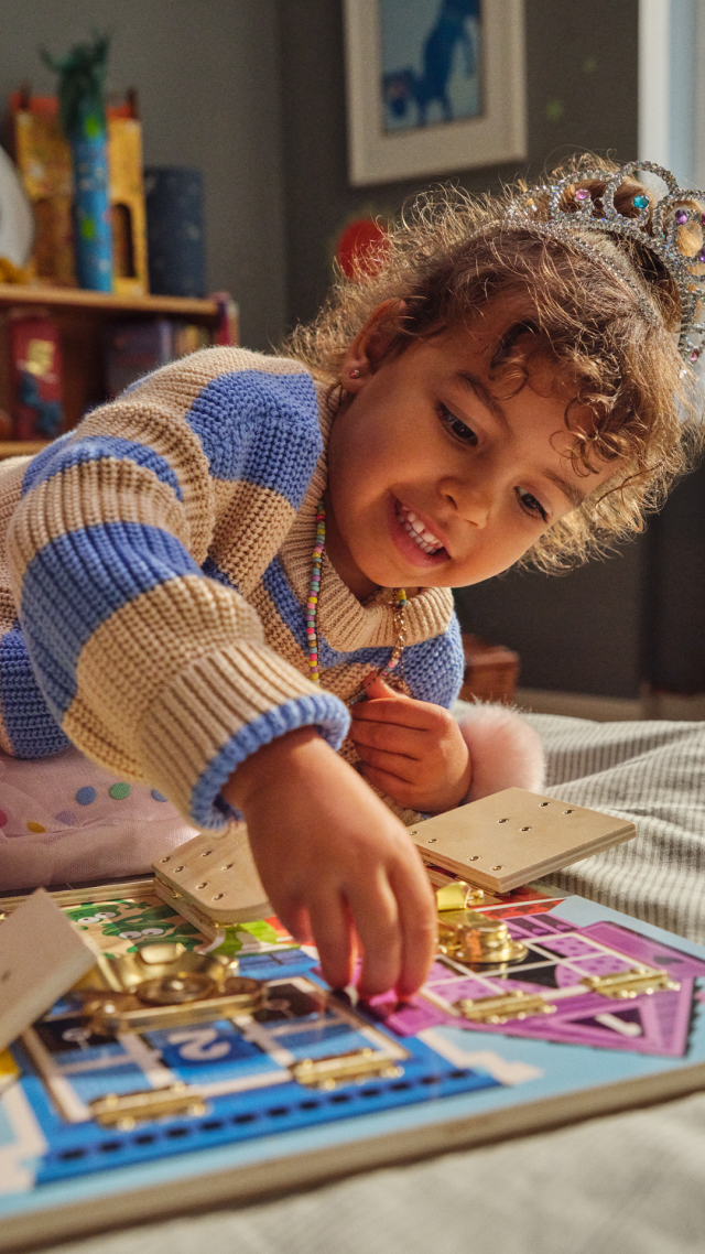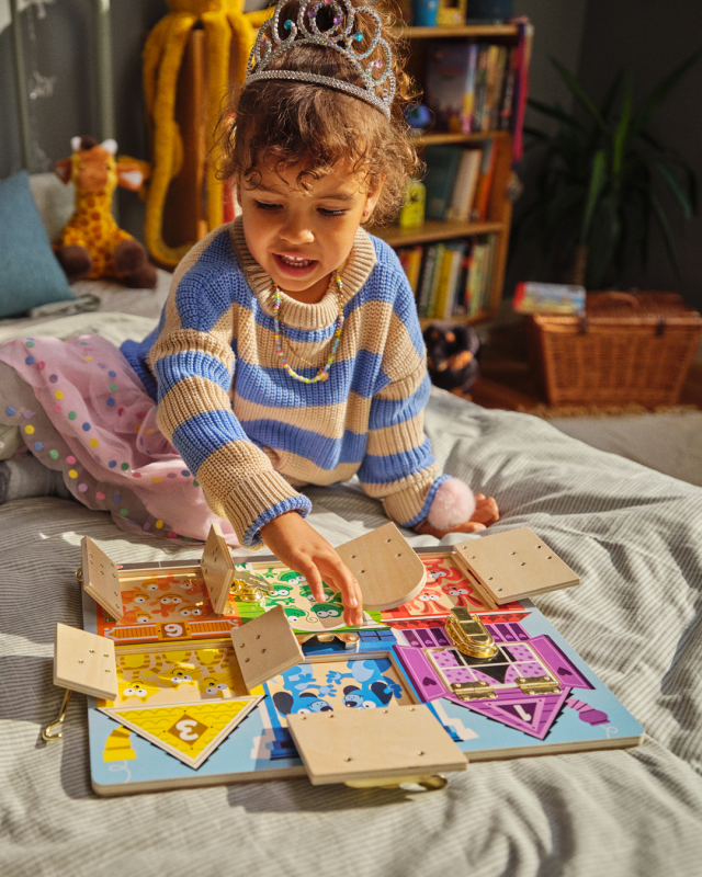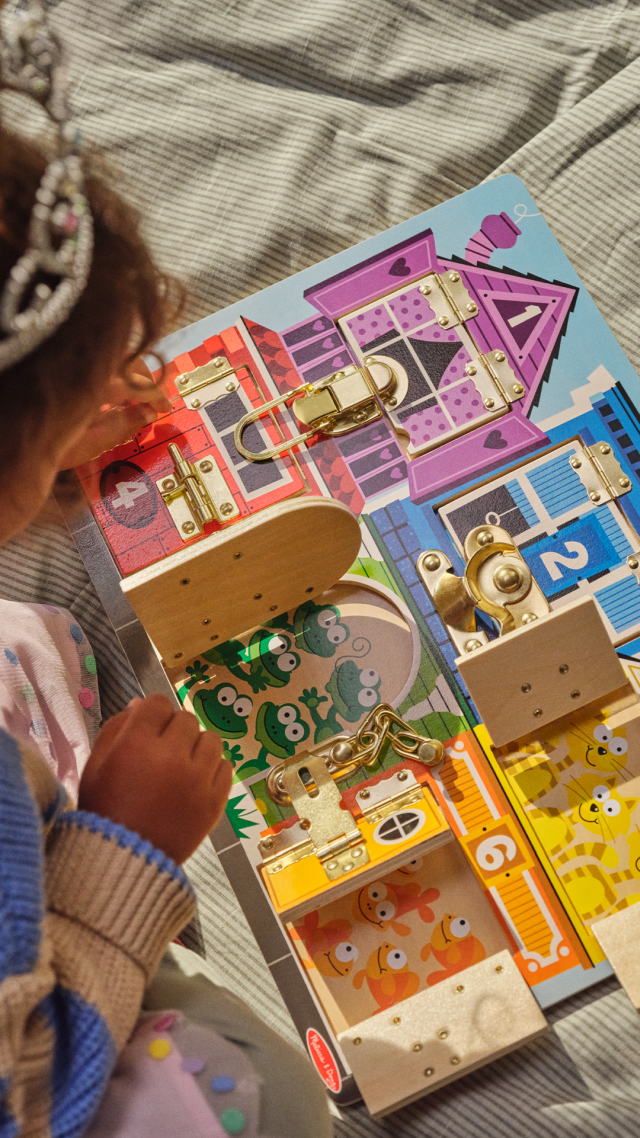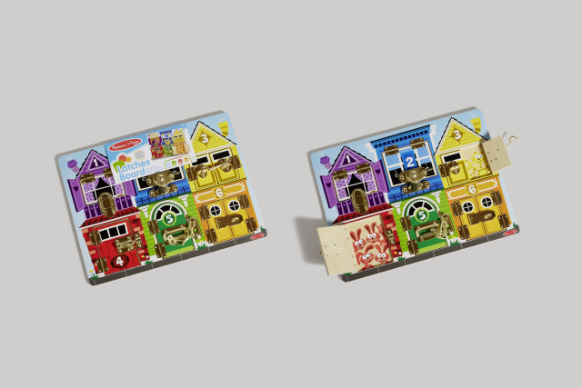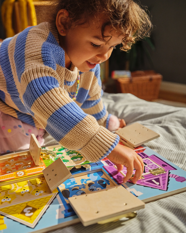 Questa tavola multiattività in legno permette ai bambini di esprimersi in tanti modi diversi! Troveranno 6 diverse serrature da aprire e richiudere per stimolare la manualità e l’ingegno. Inoltre, dietro ogni porta o finestra si nascondono degli animali, il cui numero corrisponde a quello disegnato sopra, in modo da associare il numero scritto alla quantità di animali mostrati. Infine, ogni porticina ha un colore diverso.