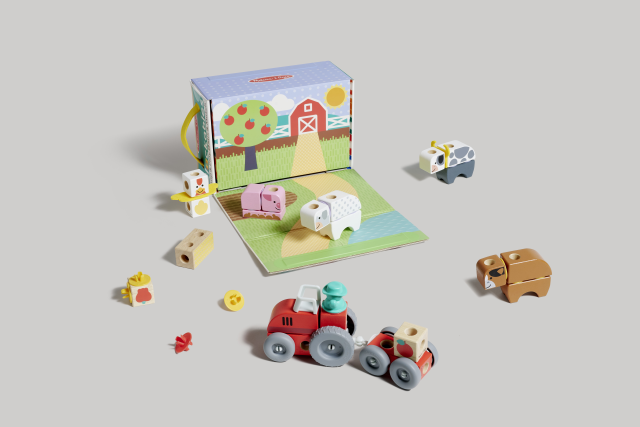 Per un gioco con i Blockables più elaborato scopri questo set da 56 pezzi a tema fattoria! Unisci i 21 blocchi in legno utilizzando i 22 pezzi di attacco e crea divertenti storie con il personaggio incluso e le ruote per il trattore! Decidi se vuoi usare la fantasia e creare animali fantastici oppure se ricreare