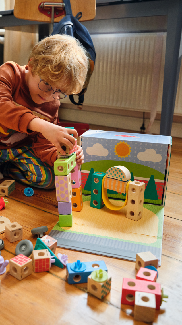 Entra nel mondo dei Blockables con questo set da 16 pezzi che include gli amici del bosco! Divertiti a creare animali veri come la volpe, l’orso, il porcospino e il procione, oppure inventane di nuovi impilando i 9 cubi come preferisci. Su ogni cubo sono presenti dei buchi in cui inserire i 7 pezzi di attacco che ti permetteranno di unire tra di loro più pezzetti. Realizzati delle giuste dimensioni per bambini dai 2 anni e con un meccanismo facilissimo da utilizzare.