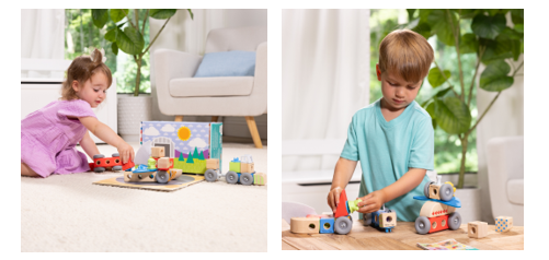 Per un gioco con i Blockables più elaborato scopri questo set da 54 pezzi a tema veicoli! Unisci i 18 blocchi in legno utilizzando i 17 pezzi di attacco e crea divertenti storie con i 2 personaggi incluse le 16 ruote! Decidi se vuoi usare la fantasia e creare veicoli mai visti oppure se ricreare l’aeroplano, il trattore, la barca e la macchina da corsa. La scatola ha un comodo manico per essere portata in giro e una calamita che permetterà di richiuderla facilmente. Ma il divertimento non finisce qui! Una volta aperta, la confezione ricrea un circuito per veicoli per giocare con i blocchi. Realizzati delle giuste dimensioni per bambini dai 2 anni e con un meccanismo facilissimo da utilizzare.