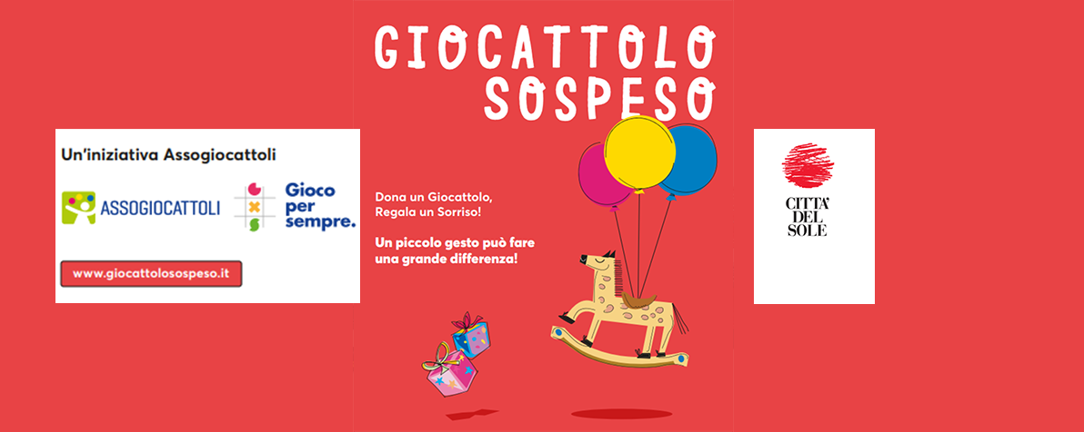 L’iniziativa benefica Giocattolo Sospeso si ispira alla tradizione napoletana del “caffè sospeso”. Anche i clienti di Città del sole potranno partecipare a questo stupendo progetto semplicemente acquistando un gioco da lasciare “sospeso” nei negozi. Saranno enti ed associazioni a fare in modo che vengano recapitati a migliaia di famiglie e bambini in difficoltà.