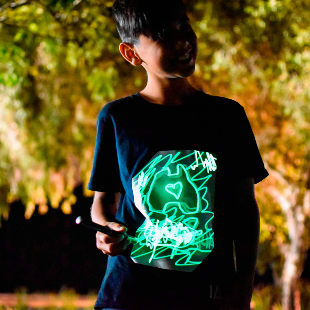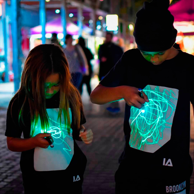 1 💡 Diventa un cacciatore di luci spente: spegni tutte le luci di casa e gioca con la tua T-shirt luminosa disegnando quello che vorrai. La maglietta si illuminerà con il tuo messaggio… prova a far indovinare agli altri in casa cosa vuoi dire! Il divertimento è garantito mentre impari l’importanza del risparmio energetico.