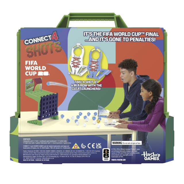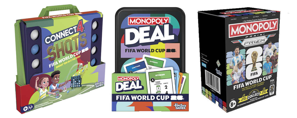 Completano la linea dedicata ai Mondiali il gioco di carte Monopoly Deal FIFA World Cup 2026™ e Forza 4 shots FIFA World Cup 2026™, che include speciali lanciatori a forma di scarpe da calcio per scagliare la pallina in rete.