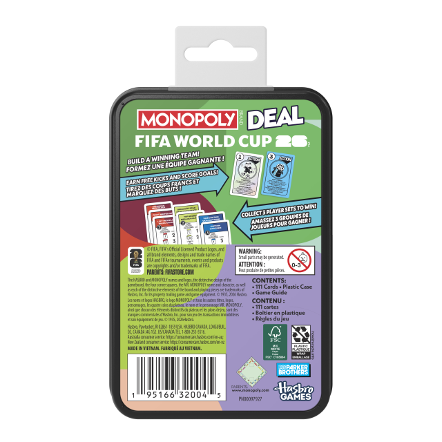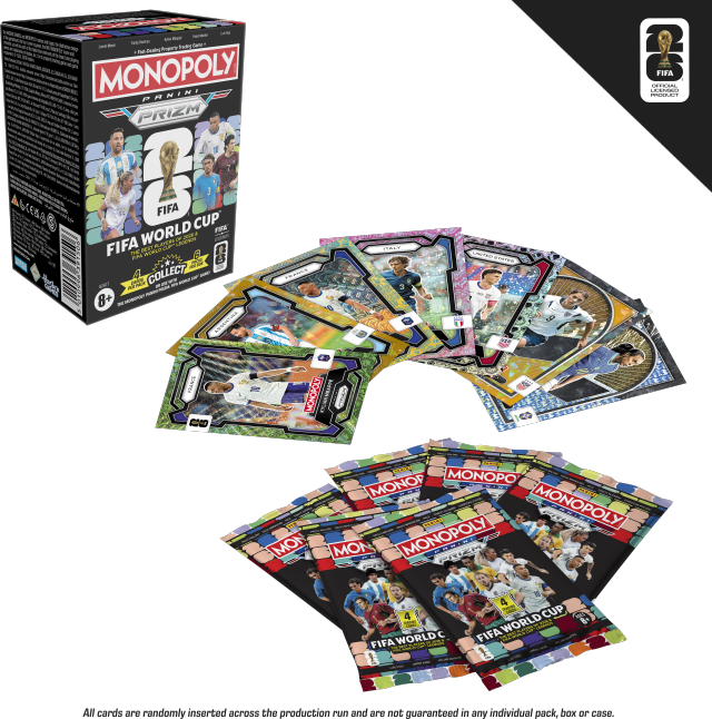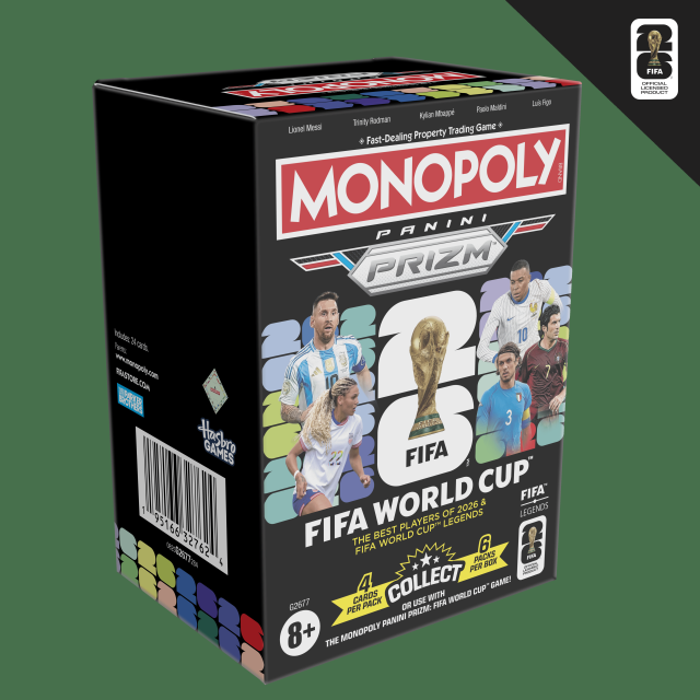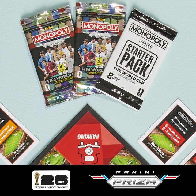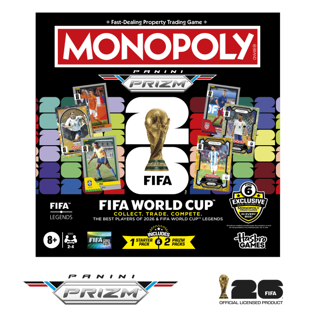 Con Monopoly Panini Prizm FIFA World Cup 2026™ edition, i giocatori possono comporre la loro squadra attraverso le carte Panini Prizm, scegliendo tra stelle attuali e leggende della FIFA World Cup, e partecipare anche loro al Torneo. Disponibile a partire da oggi presso gli shop di Amazon, è il gioco giusto per prepararsi ai Mondiali!