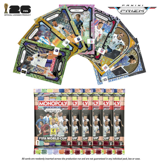 A impreziosire la collezione, anche il Booster Box Monopoly Panini Prizm FIFA World Cup 2026 che, grazie a 24 carte extra, permette di schierare in campo altri campioni.