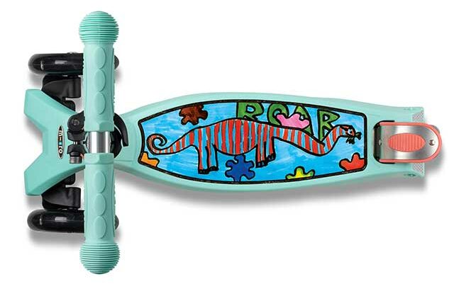 A partire da fine aprile sarà disponibile in esclusiva nei negozi Città del sole il monopattino firmato dal piccolo Leonardo, bambino che ha conquistato tutti con il suo disegno di un dinosauro rosso e azzurro durante l’iniziativa nazionale “Maxi Rientro a Scuola con Micro”